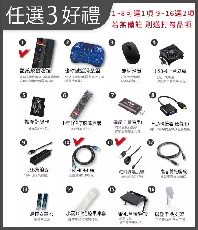 【 不可重複選,下單備註所選的三好禮,1~8選一項,9~16選兩項】